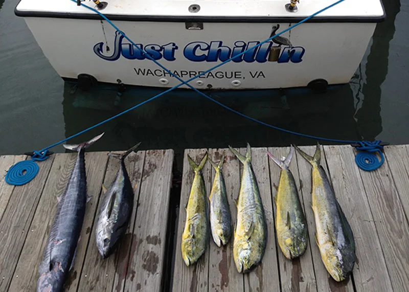Wachapreague, Virginia is the gateway to some of the best fishing action anywhere on the East Coast. There are yellowfin, bluefin and big eye tuna, wahoo, dolphin, and a variety of sharks such as mako and thresher. Nearby canyons provide exciting action with white and blue marlin. Near-shore and in-shore waters abound with a variety of flounder, seabass, tautog, bluefish, rockfish, and speckled trout. Charter a boat and see for yourself.